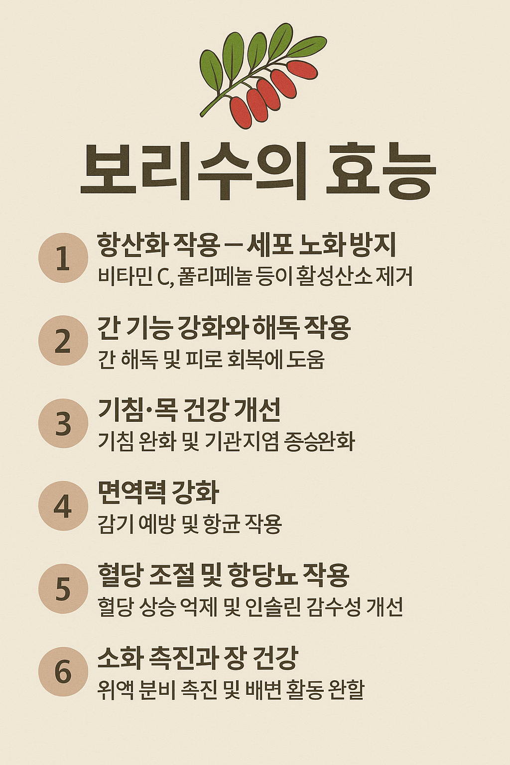 📍 보리수는 항산화, 간 건강, 면역력, 기관지, 혈당 조절 등 다양한 효능을 가진 천연 슈퍼푸드입니다.