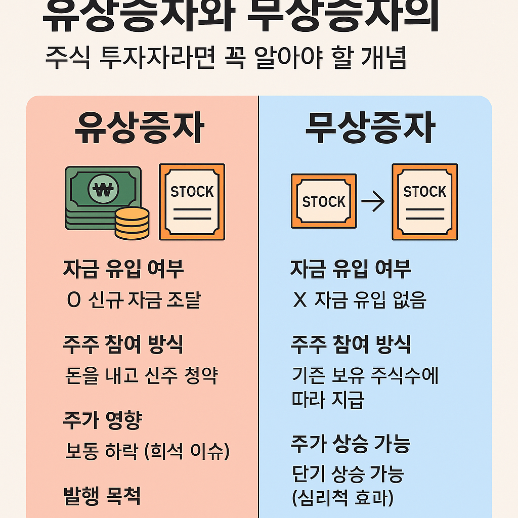 🔍 비교표: 유상증자 vs 무상증자