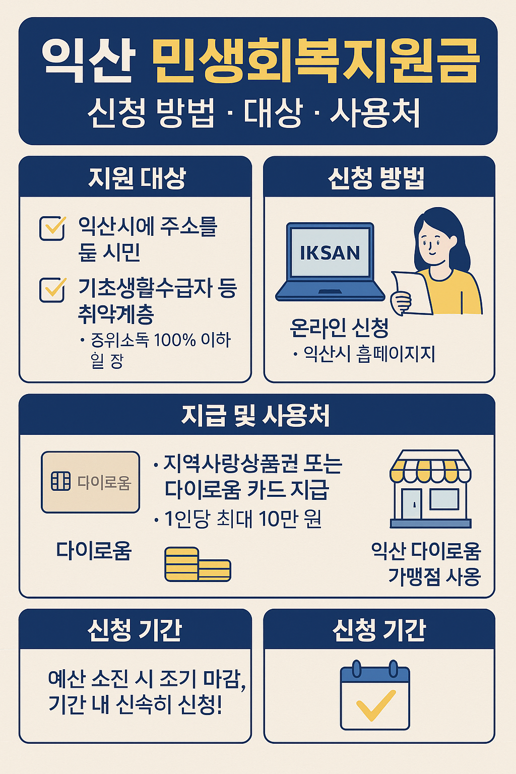 - 신청 사이트: 익산시 홈페이지 내 민생지원 포털