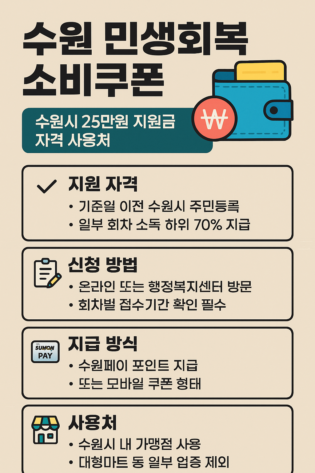 수원 민생회복 소비쿠폰 신청방법 – 수원시 25만원 지원금 자격과 사용처 총정리