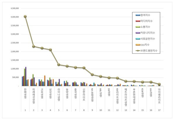 - 한화생명: 참여, 소통, 사회공헌 등이 고르게 높은 브랜드평판 지수