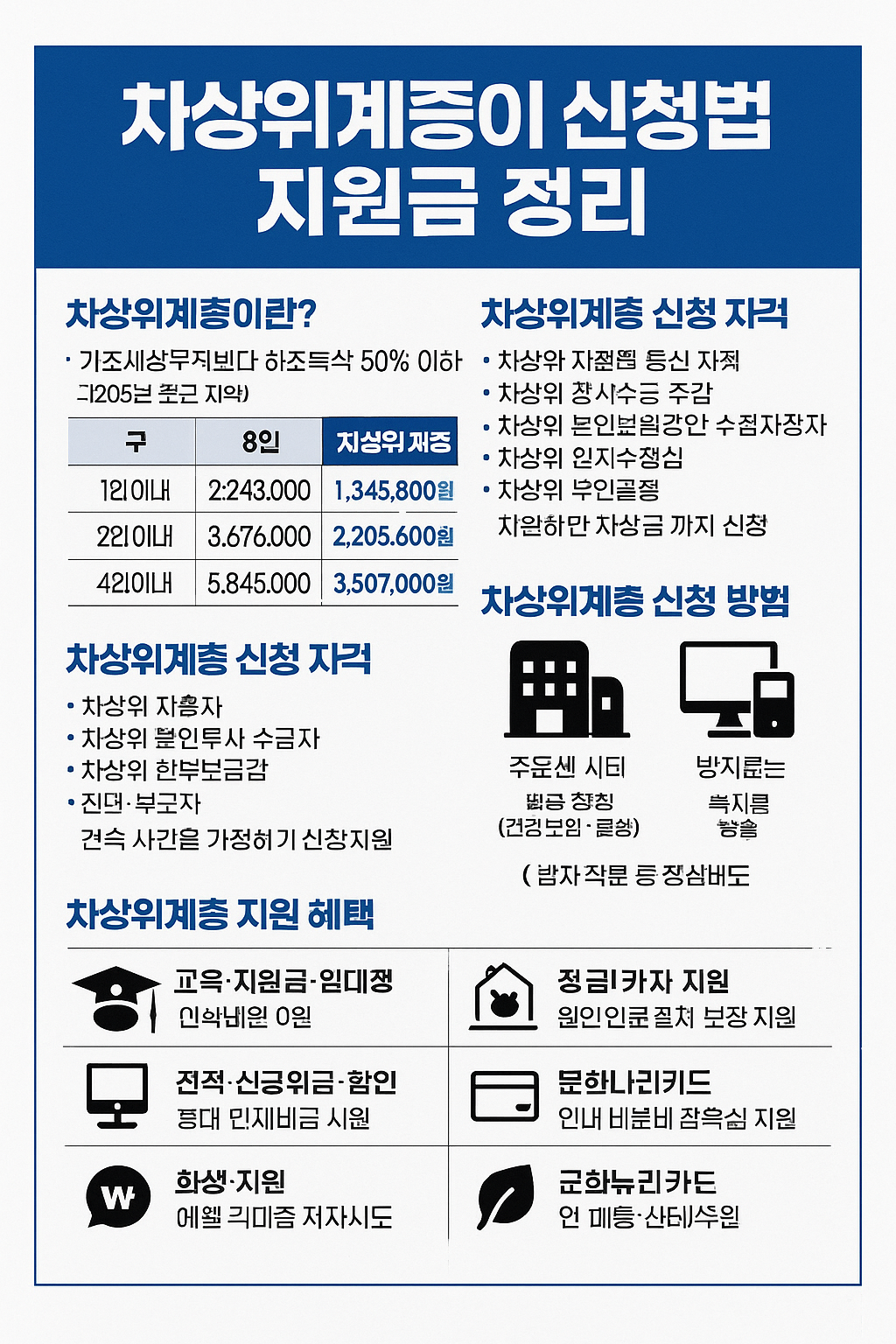 이번 글에서는 2025년 기준 차상위계층 신청방법, 자격조건, 받을 수 있는 지원금까지 깔끔하게 정리해드릴게요.