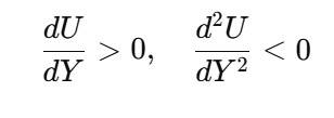 - 두 번째 미분이 음수라는 것은 소득이 많을수록 그 효용 증가폭이 작아진다는 뜻입니다.