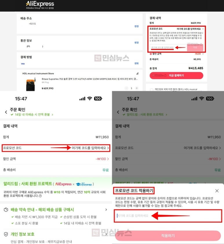 프로모션 코드 적용 방법