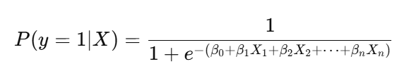 로짓 회귀의 핵심 아이디어는 선형 회귀의 결과를 로짓 함수(logit function)로 변환해 확률로 해석 가능하게 만든다는 점입니다. 수식은 다음과 같습니다: