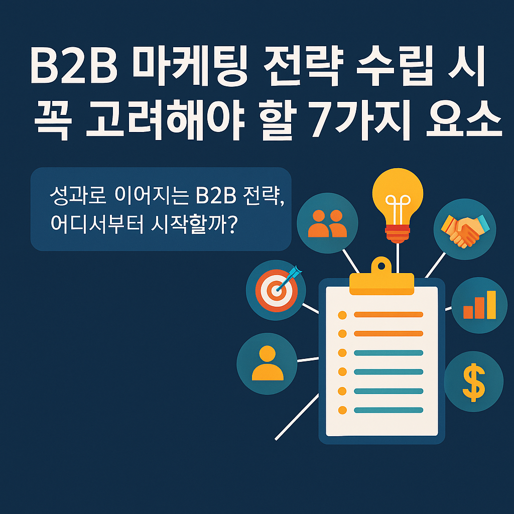 오늘은 제대로 된 B2B 마케팅 전략을 만들기 위해 꼭 고려해야 할 7가지 핵심 요소를 짚어보겠습니다. 전략을 짜기 전 이 7가지를 점검하면, 시행착오를 줄이고 실질적인 성과로 이어질 가능성이 훨씬 높아질 거예요.